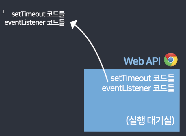 하지만, 서버로의 ajax 요청, eventlistener, setTImeout 이런 코드들은 코드를 처리하기까지 시간이 오래걸린다.