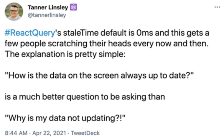 데이터를 관리하는 것은 react query이지만, 서버의 새 데이터로 캐시를 업데이트하는 시기를 설정하는 것은 사용자의 몫