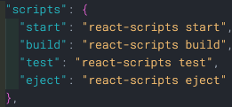 react-create-app으로 파일 생성 후 package.json을 확인해보면 "test"가 있다.