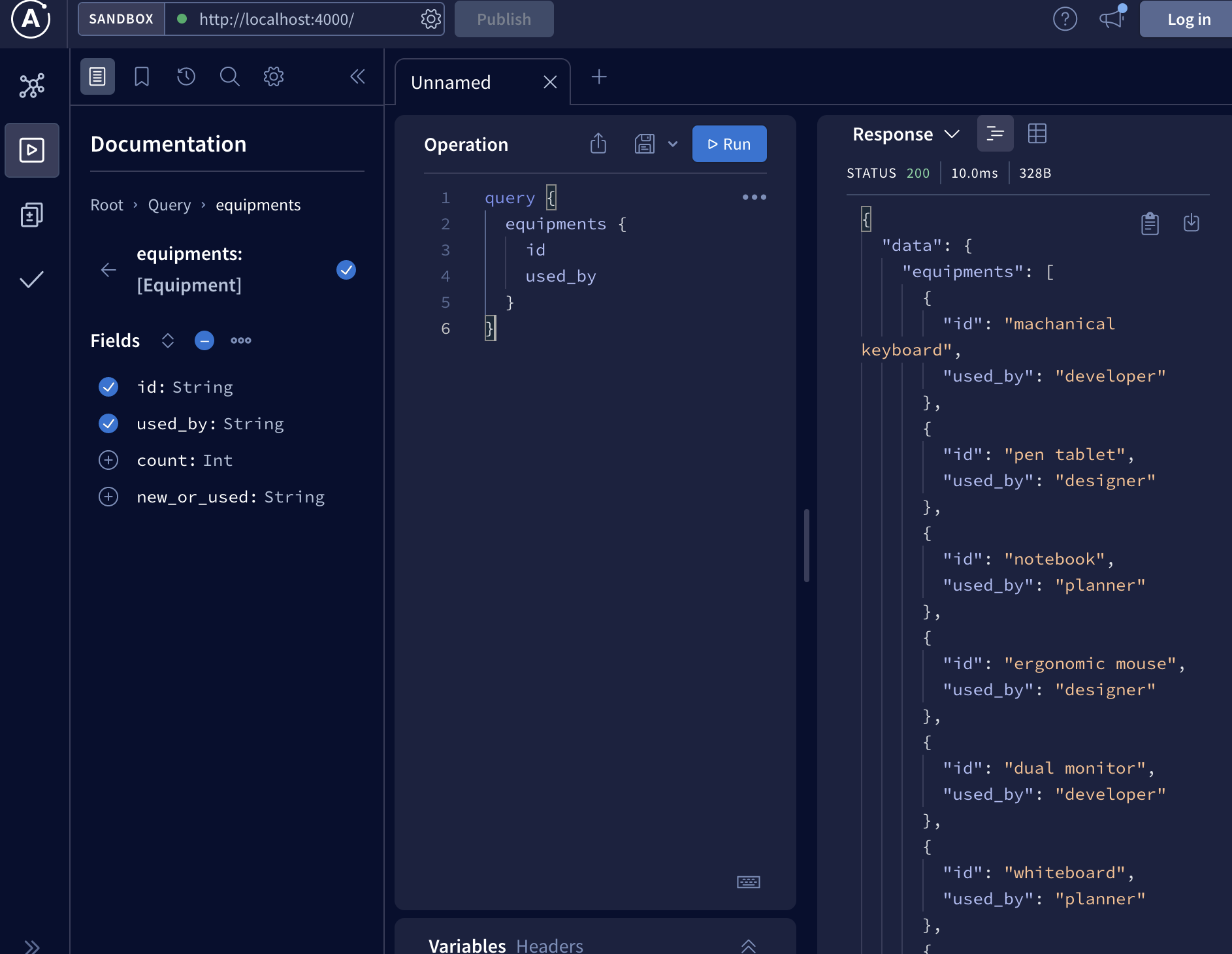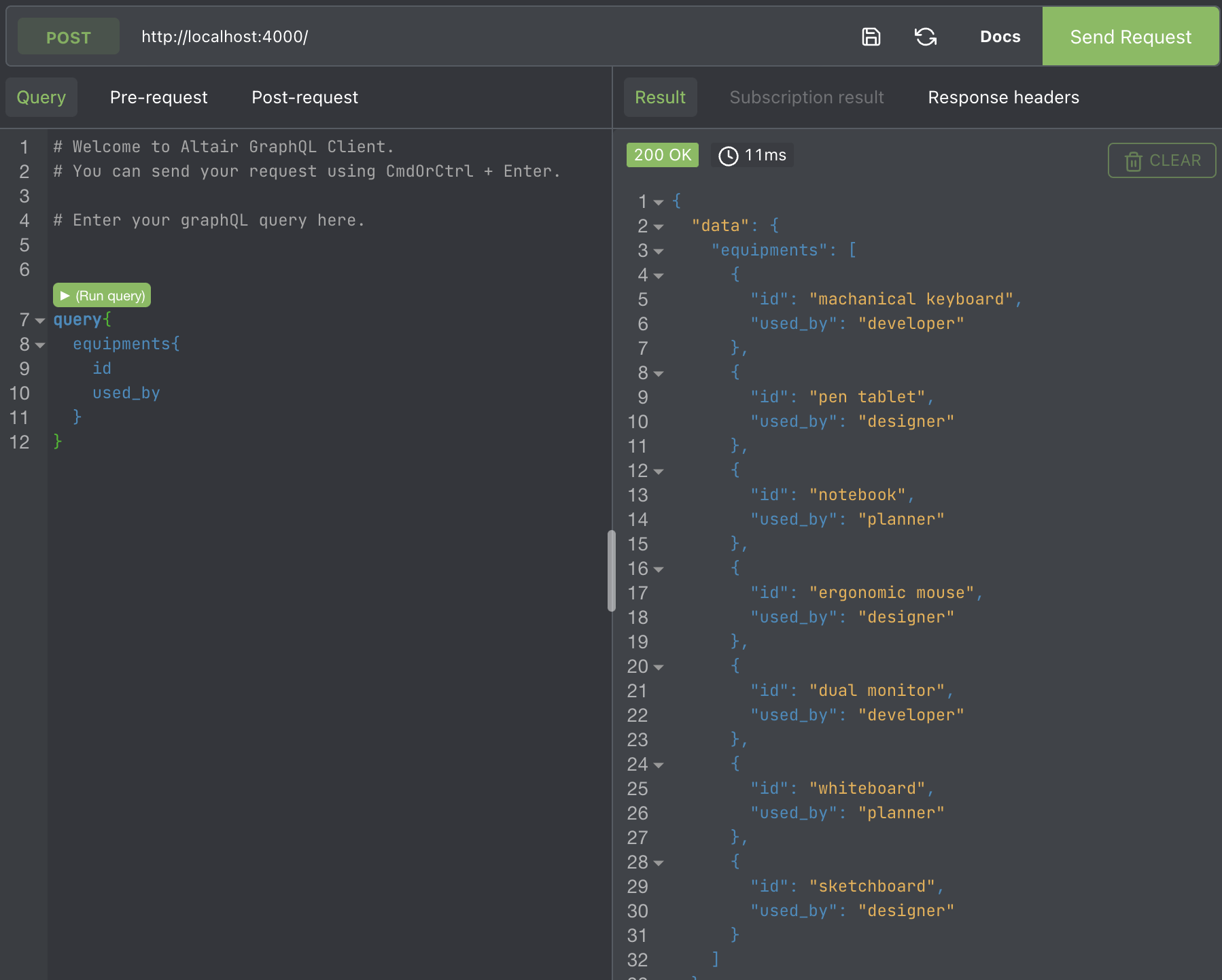 Altair같은 graphql client에서 type에 대한 설명을 Docs로 확인할 수 있다.